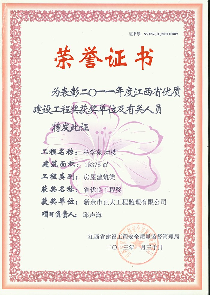 新余市正大工程監(jiān)理有限公司依托新余市建筑設(shè)計(jì)院,于1995年11月成立,是新余市開展監(jiān)理工作最早的監(jiān)理單位,本公司具有建設(shè)部核發(fā)的房屋建筑工程甲級(jí)監(jiān)理資質(zhì)、市政公用工程乙級(jí)監(jiān)理資質(zhì)、國(guó)家人防辦核發(fā)的人防工程監(jiān)理乙級(jí)資質(zhì)。我公司始終堅(jiān)持“客戶至上、質(zhì)量第一、信守合同”的經(jīng)營(yíng)理念;追求“為社會(huì)創(chuàng)造價(jià)值、為業(yè)主創(chuàng)造效益、為自身謀求發(fā)展”的經(jīng)營(yíng)宗旨;遵循“守法、誠(chéng)信、公正、科學(xué)、優(yōu)質(zhì)、高效”的工作原則,以雄厚的技術(shù)力量、完善的管理制度、豐富的監(jiān)理經(jīng)驗(yàn)、良好的企業(yè)信譽(yù)迅速成為我市監(jiān)理行業(yè)的一支新銳力量!